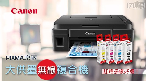 Canon-PIXMA原廠大供墨無線複合機(G3000)+贈墨水四色組1組(GI-790)+黑色墨水1入(GI-790)+Double A A4紙2包+4×6原廠相片紙1包+無線滑鼠1入" 在很多平台找看看有沒有便宜又不是水貨的